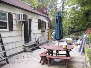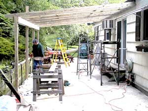 Now a fiberglass netting will be installed on top to let in light but keep out tree refuse. Then some screens will be added to make a nice place for "Dinning out".