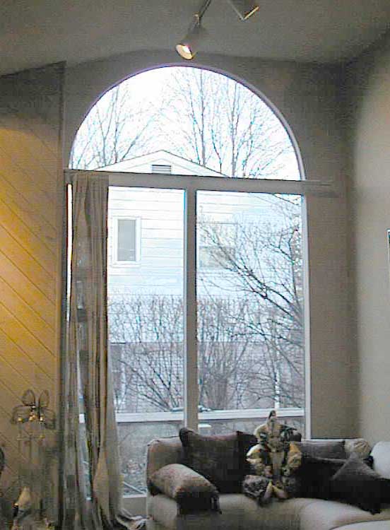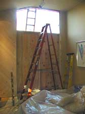 The top window is framed as a half circle!These openings will be filled with plywood while the low-E glass is manufactured.