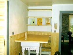 the wainscote applied some moldings and a new table and top, the corner takes